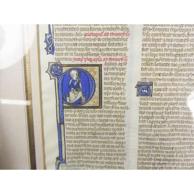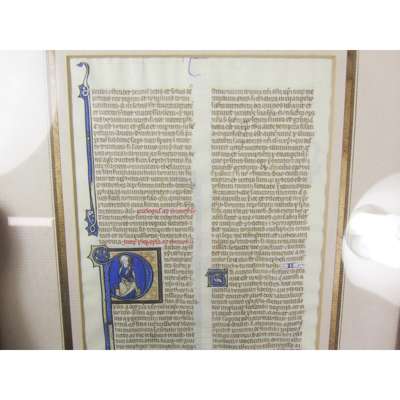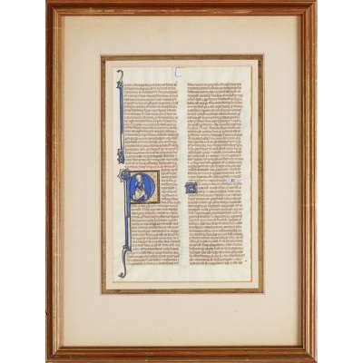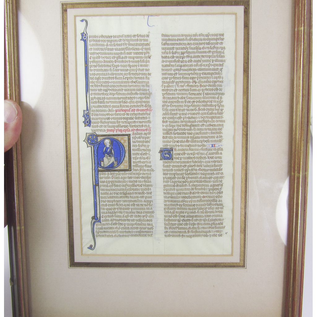 extract of the Second Epistle of St. Paul to Timothy, double column, Latin text, with capital P incorporating portrait of St. Paul, 195 x 125mm.