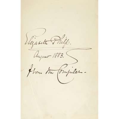 Provenance: An inscription on the flyleaf reads: Elizabeth Philp, August 1883, from the Compiler