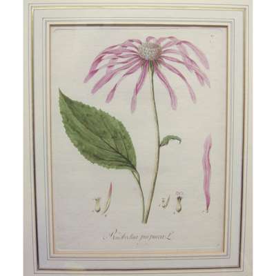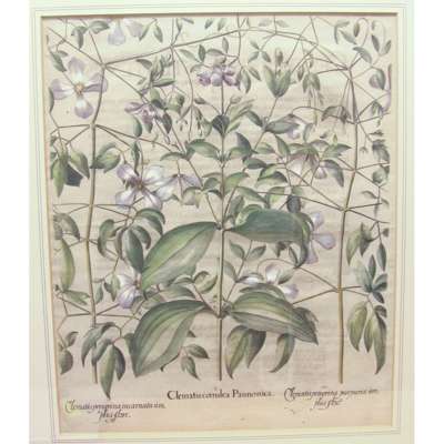 Clematis coerulea Pannonica, plate 300 from Hortus Eystettensis, 1613, 50 x 41cm, hand-coloured, framed and glazed; 7 later hand-coloured botanical prints, including: Rudbeckia purpurea, Rudbeckia Laciniata and Astragalus verus Olia; and a modern reproduction, all framed and glazed (9)