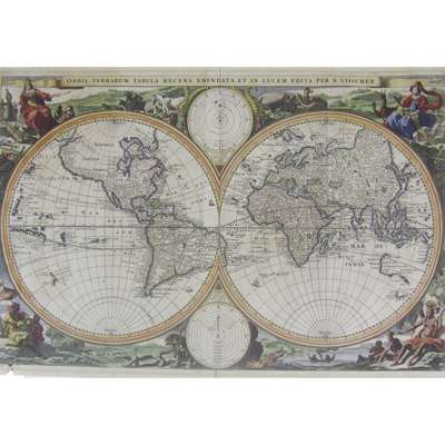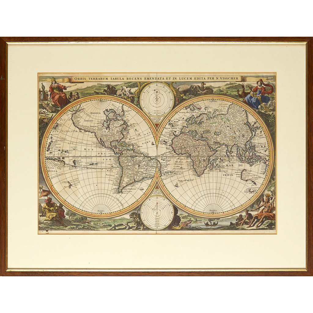 Orbis Terrarum Tabula Recens Emendata et in Lucem Edita per N. Visscher. 315 x 467mm., [Amsterdam, 1728], Dutch text on verso, not laid down