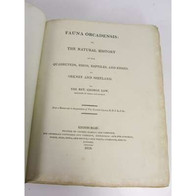 Fauna Orcadensis: or, the Natural History of the Quadrupeds, Birds, Reptiles, and Fishes, of Orkney and Shetland. Edinburgh: Archibald Constable and Company, 1813. 4to, interleaved with notepaper with several manuscript notes and the comment: The notes marked Forbes are from manuscript comments(?) from Mr James Forbes, parish schoolmaster of St Margaret's Hope, South Ronaldshay, contemporary half calf, rebacked, lacking half-title, some browning and offsetting from inserted newspaper articles