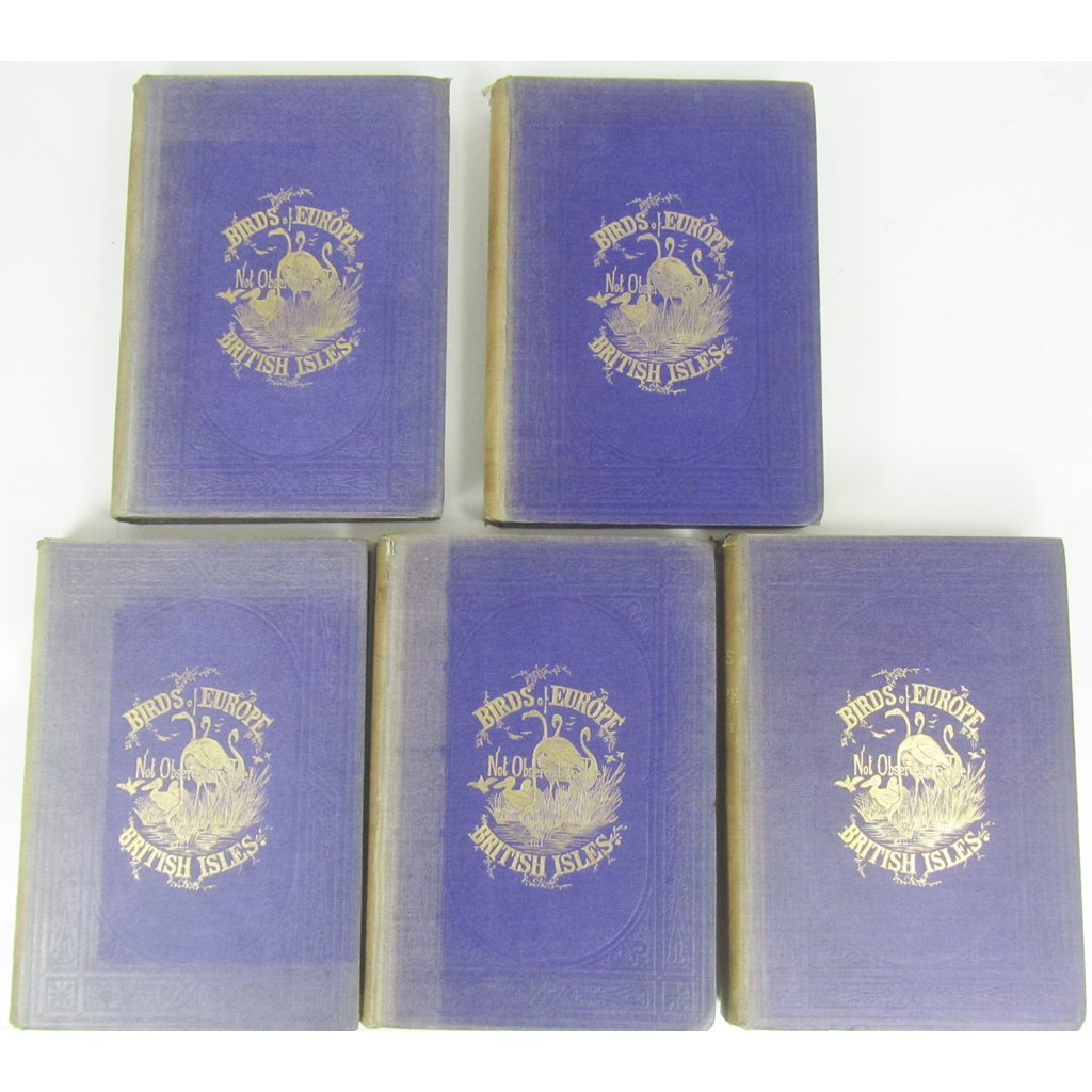 A History of the Birds of Europe, not observed in the British Isles. London: G. Bell, 1865. Second edition, 5 volumes, 8vo, 253 plates by Benjamin Fawcett, all but 1 hand-coloured, tissue guards, original pictorial maroon cloth gilt, spines faded, head and base of spines slightly rubbed