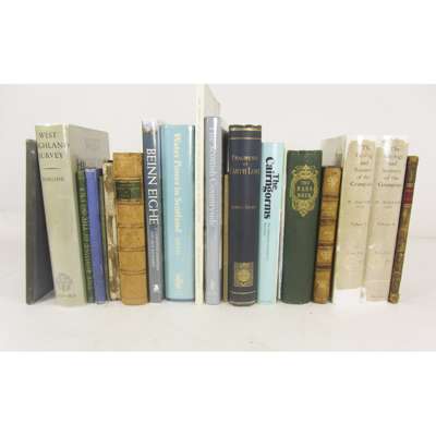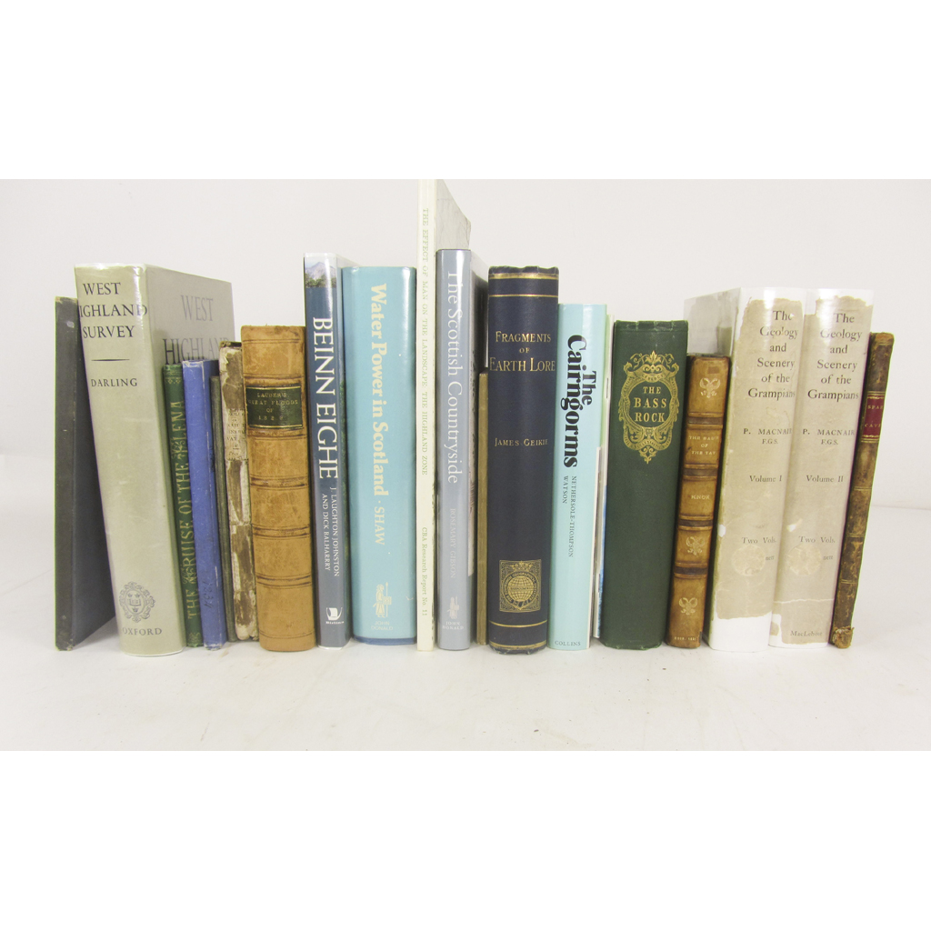 Macleay, K. Description of the Spar Cave lately discovered in the Isle of Skye. Edinburgh: Thomas Bryce..., 1811. 8vo, presentation copy from the author, contemporary half calf, some worming; Manson, D. On the Sulphur Waters of Strathpeffer. Inverness: the Counter Office, 1869. 8vo, original cloth; Horsley, William Remarks on the Pitcaithly and Dunbarney Mineral Waters in Perthshire... Edinburgh: Michael Anderson, 1814. 8vo, original boards; Lauder, Sir Thomas Dick An Account of the Great Floods of August 1829. Edinburgh: Adam Black, 1830. Second edition, 8vo, contemporary half calf, rebacked; Macnair, Peter The Geology and Scenery of the Grampians and Valley of Strathmore. Glasgow: James MacLehose and Son, 1908. 2 volumes, 8vo; MacLean, J.P. An Historical, Archaeological and Geological Examination of Fingal's Cave. Cincinnati: Robert Clarke & Co., 1890. 8vo, original blue cloth gilt; and 12 others, sold not subject to return (19)