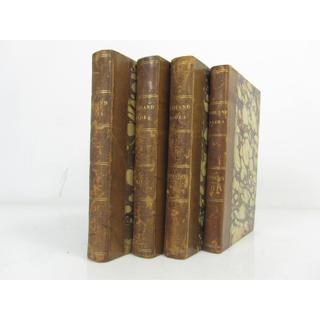 A Botanical Description of British Plants in the Midland Counties, particularly of those in the neighbourhood of Alcester. Stratford-upon-Avon, J. Ward, 1817- [London: for the author, 1821]. First edition, 3 volumes in 4, [the Appendix comprising volume 3 part 1 and volume 3 part 2], 8vo, 38 hand-coloured plates, half-titles, contemporary half calf, a trifle rubbed