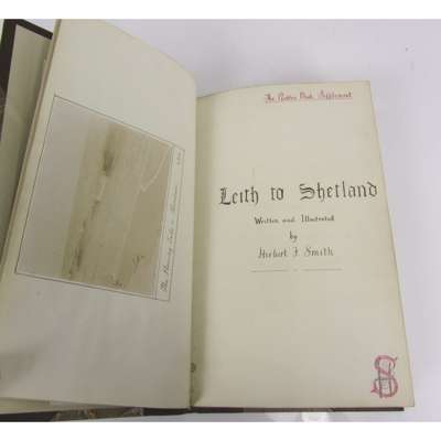 Leith to Shetland, written and illustrated by Herbert J. Smith. 8vo, 25 leaves including photographs and a hand-drawn, hand-coloured map, The Peebles Book Supplement written in red ink to top of title-page, in later 20th century brown half calf gilt