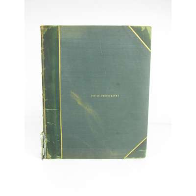 [Photographs of Western India. c.1855-1862]. 126 albumen prints (only), including 31 with printed caption cut round and mounted below photograph: Surat. English Burial Ground; Tomb of the Moola of the Boras, Surat; Dutch Tombs, Surat; The Gosayins; Ruins in the Citadel of Bijapur; Acbar's Tomb, Agra; A Group of Persians; Temples at Mutlagherry, near Ellichpoor, Northern Berar; Falls of Mutlagherry, near Ellichpoor; Parwari Women; Birds-Eye View of the Church Gate and Esplanade, from the Bank of Bombay; Bombay Green, from the Town Hall; No.4 Christ Church, Byculla. Bombay; No.6 The Cotton Ground, Colaba, Bombay; Group of Pinjaras or Cotton-Carders; No.7 The Cathedral, Bombay; Bombay. No 8 View from the South - East Frontage of the Town Hall; Bombay No. 9 A Wee Bit of the Castle; Bombay No.10 Hindu Shrine near the Railway station, Byculla; Bombay No.11 Panoramic View of the Fort from Colaba; Bombay No. 12 Back Bay, from Malabar Hill; Bombay No.13 A Bit of Malabar Hill; Bombay. No. 14 Temples at Walakeshwar; Bombay No. 15 Malabar Point; No. 6 Comfortable Gosavis; Elephanta. The Brahmanical Cave-Temple. No 1 - The Entrance; No. 2 Specimens of the Pillars; No. 3 Entrance to the Northern Aisle; Entrance to one of the smaller excavations at Elora; Portion of the Monolithic Temple of Kailas at Elora; No. 10 Huzur Pattewalas; these largely 195 x 230mm.; no printed title, only a few cut down parts of the original printed caption leaves pasted in; and 95 photographs without printed captions, albumen prints, varying sizes, some captioned in pencil, some faded, green half morocco album, worn