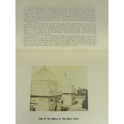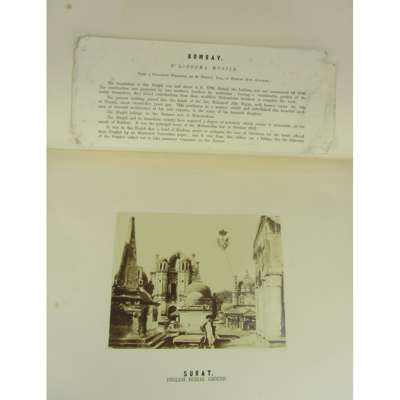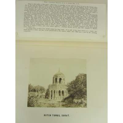 Another cutting from the same work is headed "From a Collodion Negative, by A.A. Jacob, Esq., C.E." and is inserted correctly at the photograph of "Dutch Tombs, Surat". This photograph does not appear to be in the Frere copy . A third cutting of text (not inserted at the right place) is headed "Bombay. No. 16. A Second View of the Walkeshwar Temples. Photographed by Johnson and Henderson" This probably correlates to no. 122 in the Frere/DeGolyer Library, Southern Methodist University album "Walkeshaw, Bombay - Munguldass Temple [Johnson, William, Henderson, William] [attributed]."