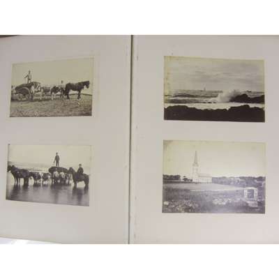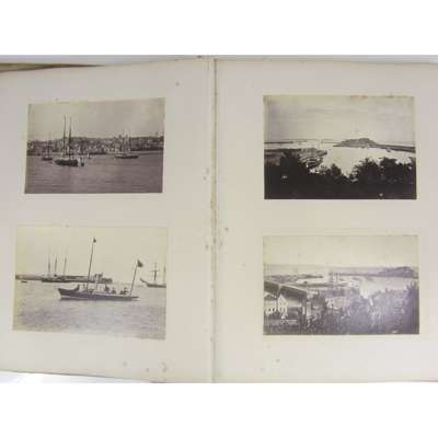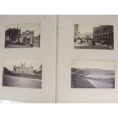 including c.100 views, albumen prints, of Guernsey, mostly by an amateur photographer, mostly 130 x 190mm.; and others of Scotland by G.W. Wilson and J. Valentine, Southampton, Christchurch, Canterbury, some Frith Series, Oxford, Windsor, Warwick, Whitby, Durham, Hythe, Buxton, Eastbourne, 2 cloth covered albums, worn, one cover detached, [c.1870's ?]