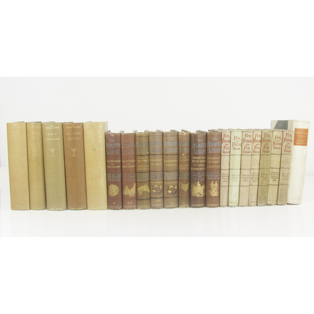 The Lonsdale Library of Sports, Games & Pastimes, 33 volumes comprising: volume 1, 3-32 (including 2x vol 24) plus 'Trout Fishing from all Angles'; The Badminton Library of Sports and Pastimes, 1886-1903, mixed edition, 12 volumes only; Fur, Feather & Fin Series: 11 volumes only (without the 'Fox' volume), mixed edition; Henley Royal Regatta, 1969, 2 volumes; Thornton A Sporting Tour. London: Edward Arnold, 1869. 8vo, half Japanese vellum; Millingen, J.G. The History of Duelling. London: Richard Bentley, 1841. 2 volumes, 8vo, modern dark blue morocco with silver tooling; and 2 others, sold not subject to return (63)