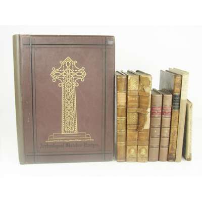 White, T.P. Archaeological Sketches in Scotland, district of Kintyre. Edinburgh: William Blackwood and Sons, 1873. Folio, original brown cloth gilt rebacked; Smith, John Galic Antiquities... Edinburgh: T. Cadell and C. Elliot, 1780. 4to, contemporary calf, neatly rebacked, bookplate; Grose, Francis The Antiquities of Scotland... London: Hooper & Wigstead, 1797. 2 volumes, contemporary half calf, joints splitting, leather from spines detaching; Mallet Northern Antiquities... London: T. Carnan, 1770. 2 volumes, 8vo, modern quarter calf; Smellie, William Account of the Institution and Progress of the Society of Antiquaries of Scotland. Edinburgh: William Creech, 1782. 4to, contemporary half calf, rebacked; Reid, George Twelve Sketches of Scenery & Antiquities of the Great North of Scotland Railway. Edinburgh: David Douglas, 1883. 4to, cloth, writing in ink to endpaper; Goodall, Walter An Introduction to the History and Antiquities of Scotland. Edinburgh: Charles Herriott, 1773. 12mo, contemporary boards, hinges split; sold not subject to return (9)