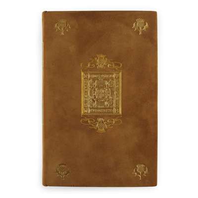 Provenance: The horse and thistle binding with the motto: "Ride Thro Be Trew" matches bindings belonging to Robert Tyndall Hamilton Bruce (1847-1899). Bruce was a Glaswegian businessman, patron of the arts and golfer. In 1903, many items from his estate were sold by Christie's.