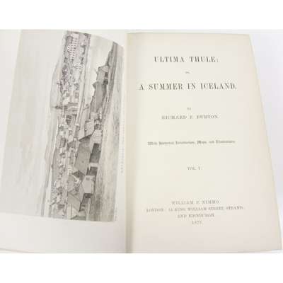 Ultima Thule: or, a Summer in Iceland. London: William P. Nimmo, 1875. First edition, 2 volumes, 8vo, 11 plates, 2 folding maps, brushed calf gilt, red gilt printed endpapers, all edges gilt, original cloth covers bound in (2)