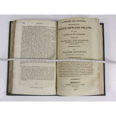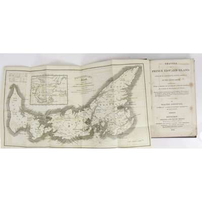 Travels in Prince Edward Island, Gulf of St. Lawrence, North-America, in the year 1820-21. Undertaken with a design to establish Sabbath Schools. Edinburgh: for David Brown, 1823. First edition, 12mo, [pp. xi , 12-132], folding engraved map, bound with Johnstone, Walter A Series of Letters, descriptive of Prince Edward Island, in the Gulph of St. Laurence. Dumfries: for the Author, 1822. 12mo, pp. iii, 4-72; 19th century blue pebble dash cloth, lettered in gilt