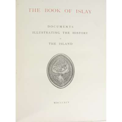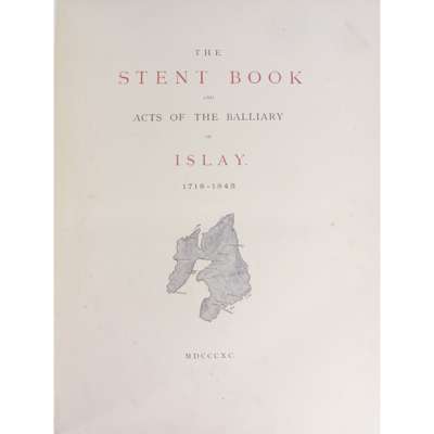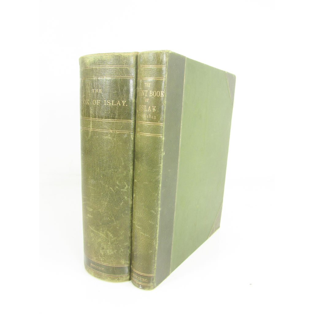 The book of Islay. Documents Illustrating the History of the Island. [Edinburgh:] privately printed, 1895. 4to, one of 250 copies, 6 plates, original green half morocco, handwritten envelope to paste-down endpaper; Stent Book The Stent Book and the Acts of the Balliary of Islay. [Edinburgh:] Privately printed, 1890. 4to, one of 250 copies printed, uniform green half morocco (2)