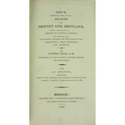 A Tour through some of the Islands of Orkney and Shetland... Edinburgh: A. Constable, 1806. First edition, 8vo, later half calf, bookplate and cancelled library stamp to endpaper, neat marginal tear to p.145 with no loss to text; Peterkin, Alexander Rentals of the Ancient Earldom and Bishoprick of Orkney. Edinburgh, 1820. 8vo; [Idem] Notes on Orkney and Zetland. Edinburgh: Macredie, Skelly, and Company, 1822. 8vo, volume 1 (all published), frontispiece, plate; uniformly bound in contemporary calf gilt with black morocco gilt labels to spines, bookplates of John M. Slater, some spotting (3)