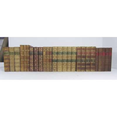 History and Description of the Ancient City of York. York, 1818, 2 volumes in 3 (vol. 2 being part 1 and 2), 8 engraved plates, 1 folding and coloured, (1 misbound as frontispiece of vol.2 pt. 2), numerous wood-engravings, contemporary half calf, spines gilt; Townsend, Joseph A Journey through Spain in the years 1786 and 1787. 1792. Second edition, 3 volumes, 8vo, contemporary tree calf, spines gilt, lacks several labels; Yarrell, William A History of British Birds. 1843, 3 volumes, 8vo, wood-engravings, contemporary red half morocco, gilt; Kinglake, A.W. The Invasion of the Crimea. 1863-75. Fourth edition, volumes 1-5 (of 8), 8vo, contemporary half calf, spines gilt; Russell, William The History of Modern Europe. 1842. 4 volumes, 8vo, contemporary half calf, one joint splitting; [Smedley, F.] Frank Fairleigh. 1850; Lever, C. The Knight of Gwynne. 1847; Lever, C. Roland Cashel. 1850, the last 3 with plates, contemporary half calf; Robertson, W. The Works. 1820. Volumes 1-5 (of 12), contemporary half calf, red morocco labels (26)