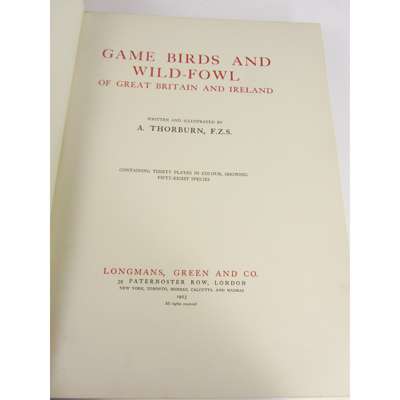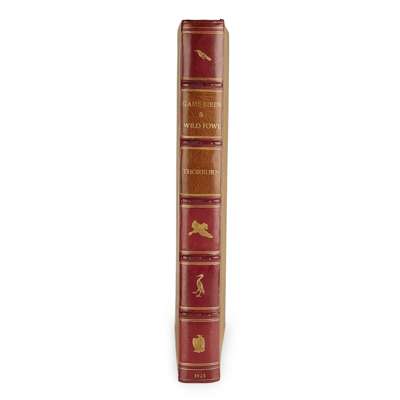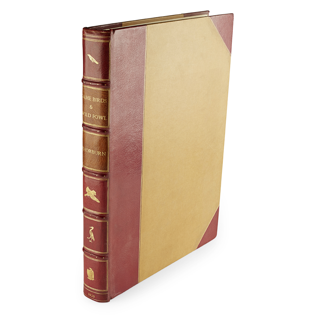 Game Birds and Wild-Fowl of Great Britain and Ireland. London: Longmans, Green and Co., 1923. First edition, folio, 30 plates, red half morocco with brown morocco gilt labels to spine, spine banded in 6 compartments with 4 gilt bird motifs, bookplate of J. Robertson, a little foxing to half-title, upper cover very slightly faded