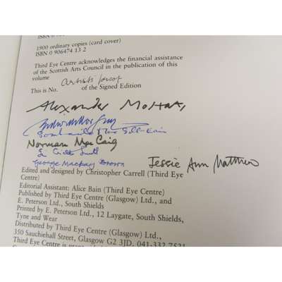 Seven Poets. Glasgow: Third Eye Centre, 1981. Oblong 8vo, artist's proof copy signed by Alexander Moffat, Christopher Fry, Sorley Maclean, Norman MacCaig, Iain Crichton Smith, George Mackay Brown and Jessie Ann Matthew, dust-jacket, original green cloth gilt, ownership sticker of G.M. Brown