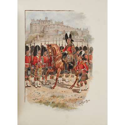 The Brave Sons of Skye. 1899, 4to, original red cloth gilt, slight spotting; Historical Records of the 72nd Highlanders, now 1st Battalion Seaforth Highlanders. 1886, 8vo, green morocco, neatly rebacked; Clark, James Historical Record and Regimental Memoir of The Royal Scots Fusiliers. 1885, 8vo; Leask, J.C. & H.M. McCance The Regimental Records of The Royal Scots. Dublin, 1915. 4to, original calf, neatly rebacked retaining original spine; Weir, R.W. A History of the Scottish Borders Militia. Dumfries, 1877; Cooper, W.S. A History of the Ayrshire Yeomanry Cavalry. 1881, original cloth; Orr, James History of the Seventh Lanarkshire Rifle Volunteers. 1884, worn, repairs; Howie, David History of the 1st Lanark Rifle Volunteers. 1887, 8vo; Dewar, T.F. With the Scottish Yeomanry... South Africa. Arbroath, 1901; A Short History of The Black Watch (Royal Highlanders) 1725-1907. 1908; Historical Records of the Queen's Own Cameron Highlanders. 1909, 2 volumes, 4to; MacWilliam, H.D. The Official Records of the Mutiny in the Black Watch. 1910., 4to; Scobie, I.H.M. An Old Highland Fencible Corps. 1914, 4to; Moir-Bryce, W. Souvenir of the Queen's Rifle Volunteer Brigade Royal Scots in 1889. [c.1889], oblong 4to, original red morocco-backed pictorial boards, somewhat worn and soiled; Groves, P. History of the 79th Queen's Own Cameron Highlanders. 1893. Folio, 4 coloured plates by Harry Payne; Tullibardine, Marchioness of A Military History of Perthshire. 1908, 2 volumes, 4to; Ferguson, J. Record of the 9th [Volunteer] Battalion (Highlanders) The Royal Scots. 1909, 8vo, Edmonstone Brown, A.N. Notes on the Dress of the Seventy-First Regiment,. 1934. Oblong 4to, green half calf, rubbed; Ashdown, C.H. The "Old Albanian" 1899-1902, 8vo; Buchan, John A History of the Great War. 1922. 4 volumes, 8vo; Wylly, H.C. Neill's Blue Caps. Volume 1 only, 4to; Brown, W.S. War Record of 4th Bn. King's Own Scottish Borderers and Lothians and Border Horse. 1920. 4to, quarter vellum gilt; "Backsight Forethought" The Defence of Duffer's Drift. 1913, 8vo; Clark, J. Historical Record and Regimental Memoir of the Royal Scots Fusiliers. 1885, 8vo, coloured plates; Davies, G. The Early History of the Coldstream Guards. 1924; Petre, F. Loraine The Scots Guards in the Great War. 1925, 8vo; original cloth, except where noted; and a quantity of others on Scottish military history