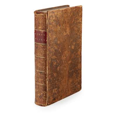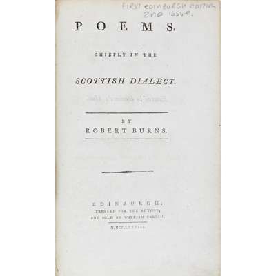Poems Chiefly in the Scottish Dialect. Edinburgh: William Creech, 1787. Second [First Edinburgh] edition, 8vo, half-title, first issue with "skinking" on p. 263 and "Boxburgh" for "Roxburgh" in list of subscribers, engraved frontispiece, list of subscribers, contemporary tree calf, early ownership inscription of Edward Bethy, Captain of the Life Guards, 1812, some splitting to joints
