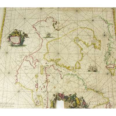 Septemtrionaliora Americae à Groenlandia, per Freta Davidis et Hudson ad Terram Novam. Amsterdam: no date, hand-coloured in outline, 53 x 61cm, browned with closed tear to lower cartouche; [Idem] Occidentalior Tractus Maris Mediterranen. Amsterdam: no date, hand-coloured in outline, 53 x 61cm, browned with several marginal chips and tears (2)