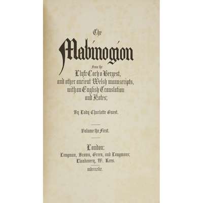 and other ancient Welsh manuscripts, with an English translation and Notes, by Lady Charlotte Guest. London: Longman [&c.], 1849. 3 volumes, 8vo, 20 plates, 2 folding, tree calf by Hayday, spines gilt, small crack to two joints