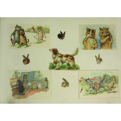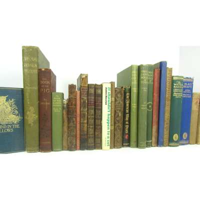 Grahame, K. The Wind in the Willows. 1909. Fourth edition, frontispiece, original pictorial cloth gilt, some spotting, pp.41-44 carelessly opened; Mudie, Robert The Feathered Tribes of the British Islands. Chippendale, Sheraton and Hepplewhite Furniture Designs. 1900. 4to, original cloth, somewhat rubbed and soiled; 1835. Volume 2 only, hand-coloured engraved plates, original cloth, spine split; Long, James The Book of the Pig. 1886, plates, original cloth, rubbed; Barker, Cicely Mary The Book of the Flower Fairies. [N.d.], coloured plates, original pictorial green cloth gilt; Daily Words and Doctrinal Texts of the Brethren's Congregation, for the year 1785. 1784, 12mo, contemporary quarter calf, waterstained, couple of tears; Leslie, P. D. A Philosophical Inquiry into the Cause of Animal Heat. 1778, contemporary half calf, worn, cover detached; [Dodgson, C.L.] The Hunting of the Snark. 1899, original pictorial cloth gilt; Barber Barber's Picturesque Illustrations of the Isle of Wight. [c.1840], engraved title, map, 40 engraved plates, contemporary half calf, marginal dampstain, worn; Hazlitt, William Lectures on the English Comic Writers. 1819, contemporary calf; Hazlitt, William Characters of Shakespear's Plays. 1818, Second edition, contemporary calf, upper cover detached; Herriot, J. It shouldn't happen to a vet. 1972. First edition, dust-jacket; Francis, G.W. An Analysis of the British Ferns and their Allies. 1855, engraved title and plates, original green cloth, binding slightly marked; Victorian Scrap Album, large number of chromolithograph postcards, cut outs, Christmas and New Year cards, 4 Louis Wain cards (75 x 110mm.); Weaver, Lawrence Small Country Houses of To-Day. [N.d., 1922, 1925], 3 volumes, 4to, original cloth, one hinge broken; and others (quantity)