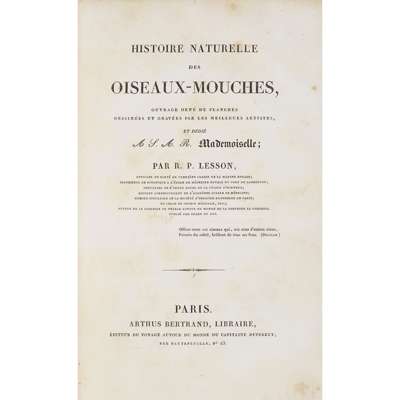 Histoire Naturelle des Oiseaux-Mouches. Paris: Arthus Bertrand, [1829-30]; 46, 223, 86 plates, all printed in colour and finished by hand (including 48 bis);