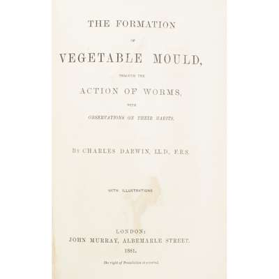 The Formation of Vegetable Mould through the Action of Worms... London: John Murray, 1881. First edition, 8vo, original green cloth gilt, hinges a little weak, slight rubbing to joints and covers