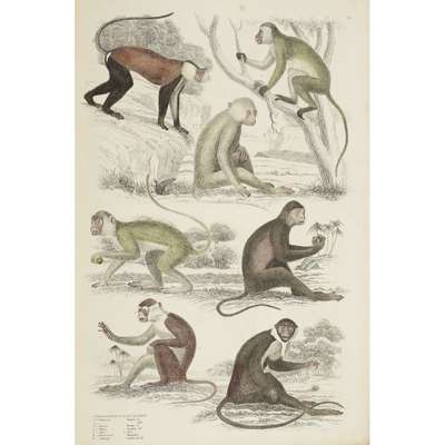 Note: In each volume, there is a printed list "Index to the Illustrations of Part A [-G]" pasted onto the front paste-down endpaper. All 130 plates listed are present in this set. However engraved plate no 74 in part C ("Merops") is incorrectly listed as plate 94. There are 18 plates in parts A, B, and D-F, 20 plates in parts A and C.