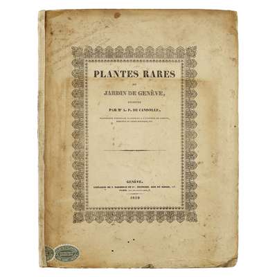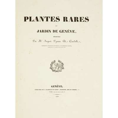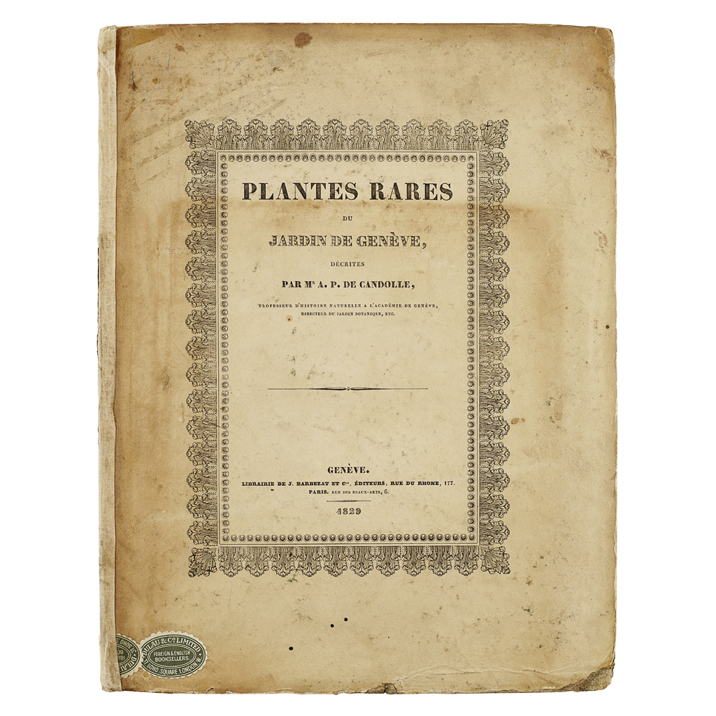 The present rare work was published a few years after the Swiss botanist Candolle settled in Geneva where he became director of the ‘Jardin Botanique’. Candolle's main focus was botany but he also contributed to related fields such as phytogeography, agronomy, paleontology, medical botany, and economic botany.