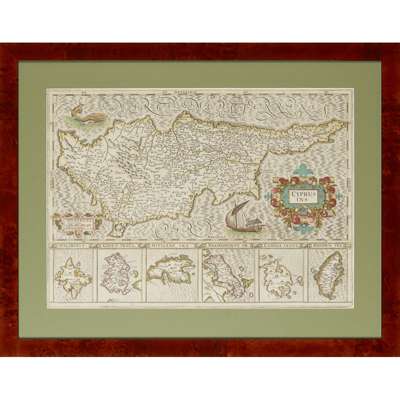 Cyprus Ins. Amsterdam 1633, 35 x 49cm, hand-coloured engraved map, framed and glazed