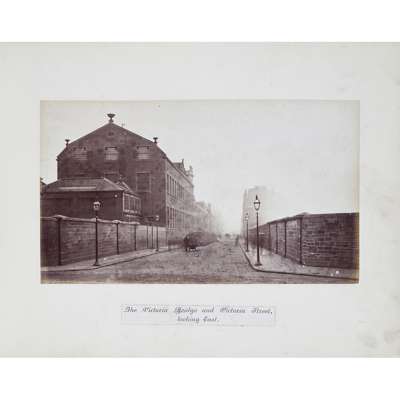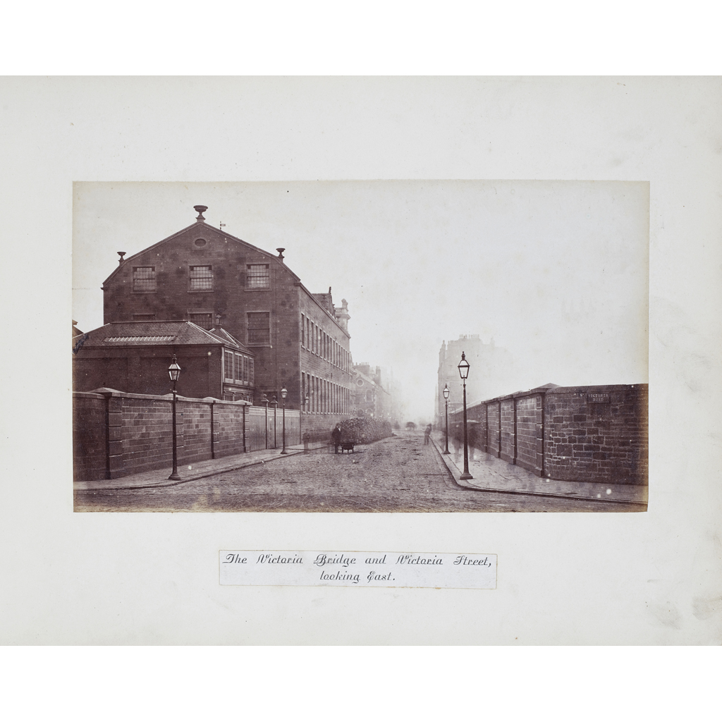 Dundee Old & New. [Dundee, 1880?] Oblong 4to album, containing one portrait photograph of Convener [sic.] of the Improvement Committee of the Dundee Police Commissioners, 1871-1880 and 52 albumen prints of Dundee, various sizes but mostly 11 x 20cm, original red morocco gilt