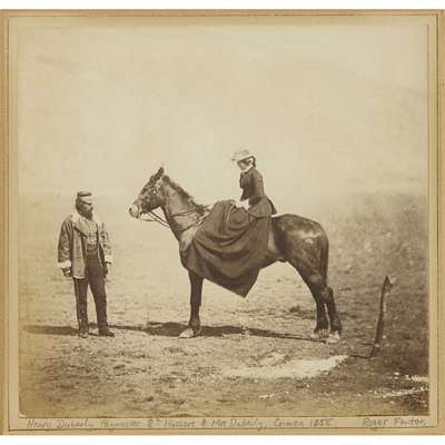 Henry Duberley, Paymaster 8th Hussars & Mrs Duberley, Crimea, 1855, albumen print, 14.5 x 15cm, laid-down to mount, framed and glazed