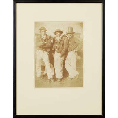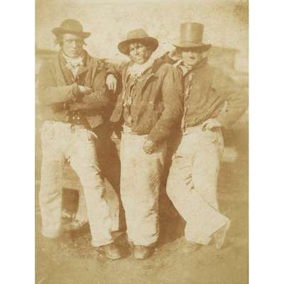 Three Newhaven Fishermen, c.1845, calotype, 19.5 x 14.5cm, not laid-down, framed and glazed
