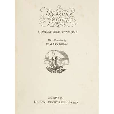 Treasure Island. London: Ernest Benn Limited, 1927. 4to, number 1 of 50 copies signed by Dulac, 12 colour plates by Dulac, a little light foxing, slight bowing to covers