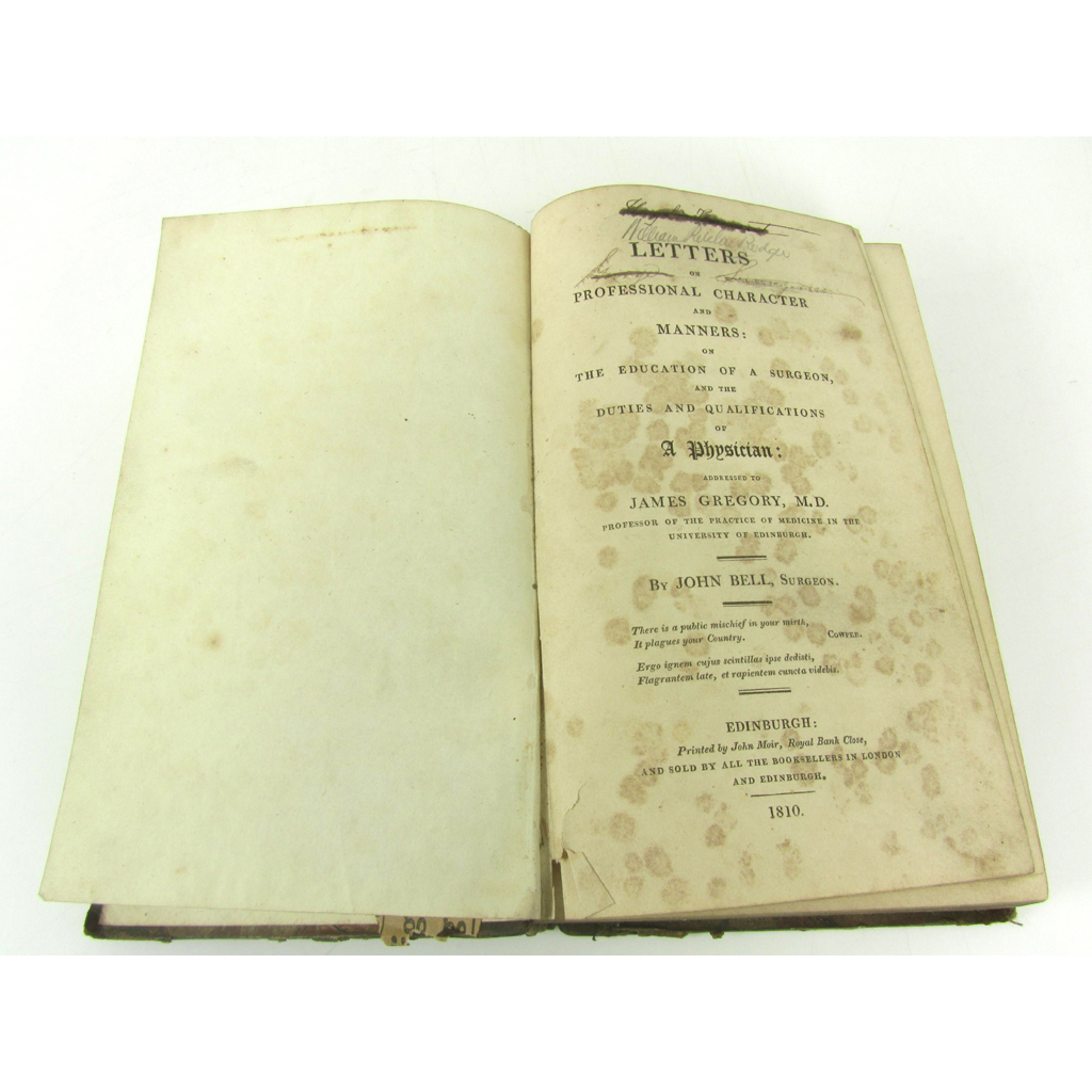 Letters on the Professional Character and Manners: on the Education of a Surgeon. Edinburgh: J. Muir, 1810. First edition, 8vo, contemporary calf, rubbed, title with owner's name deleted, spotted & small tear in inner margin