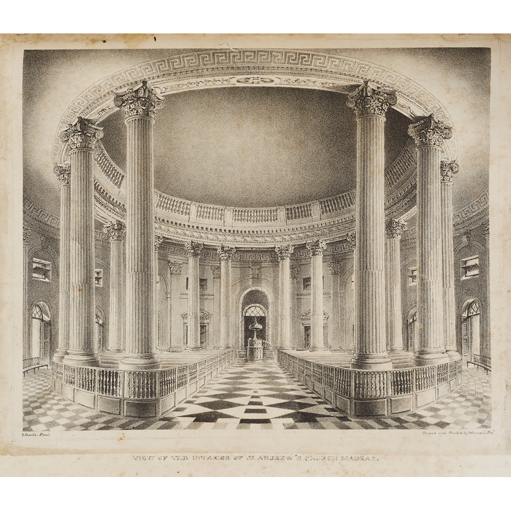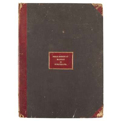 [Descriptions and Delineations of Some of the Public and Other Edifices at and in the Vicinity of Madras... London: Parbury, Allen and Co., 1826] 4to, folding map, 15 plates (some laid-down), contemporary red half morocco, lacking title-page and pp.1-2, some tears, repairs, browning and soiling
