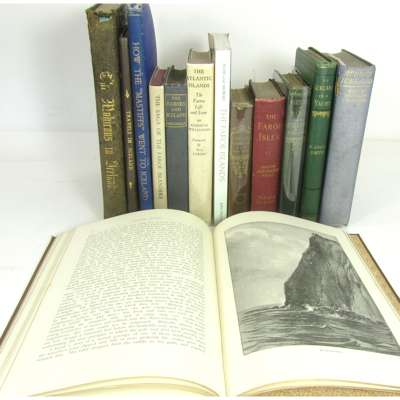 Mackenzie, George Stewart Travels in Iceland. Edinburgh: William and Robert Chambers, 1842. 8vo, modern brown quarter calf gilt; Howell, Frederick W. W. Icelandic Pictures. London: The Religious Tract Society, 1893. 4to, original brown pictorial cloth; Trollope, Anthony How the "Mastiffs" went to Iceland. London: Virtue & Co., Limited, 1878. 4to, original blue cloth gilt; [Hillard, J.B.] The "Mohicans" in Iceland. Glasgow: Maclure, Macdonald & Co., [1886] 4to, 11 plates, including 9 photogravures, original embossed calf; Symington, Andrew James Pen and Pencil Sketches of Faroe and Iceland. London: Longman, Green, Longman, and Roberts, 1862. 8vo, original green cloth gilt; Smith, R. Angus To Iceland in a Yacht. Edinburgh: privately printed by Edmonston & Douglas, May 1873. 8vo, original green cloth gilt; and 6 others, sold not subject to return (12)