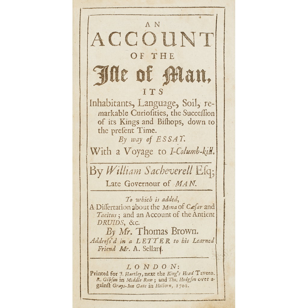 An Account of the Isle of Man. London: J. Hartley, 1702. 8vo, contemporary panelled calf, rubbed [ESTC T147197]