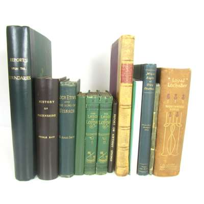 Leaves from a Journal. Edinburgh, 1824, 8vo, original boards, rebacked, some soiling; House of Commons Reports upon the Boundaries of the Several Cities, Burghs and Towns in Scotland. 1832, Folio, numerous folding engraved town plans, with some hand-colouring, modern quarter morocco;Forrest, William H. Report, Chemical and Medical, of the Airthrey Mineral Springs. Stirling, 1831. 12mo, frontispiece, modern quarter calf, frontispiece trimmed; Buchanan, Robert THe Land of Lorne. 1871, 2 volumes, 8vo, original cloth; Smith, R.A. Loch Etie and the Sons of Uisnach. 1885, original cloth; Bain, George History of Nairnshire. Nairn, 1893, 8vo, modern quarter calf; Drummond, W. Loyal Lochaber. 1898, 4to, original quarter morocco; House of Commons Correspondence from July 1846 to February 1847 relating to the Measures adopted for the Relief of the Distress in Scotland. 1847, folio, contemporary half calf, joints splitting; Fraser-Mackintosh, C. The Minor Septs of Clan Chattan. Glasgow, 1898, 4to, coloured plates, original cloth, t.e.g.; and a quantity of Scottish history, archaeology and topography