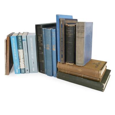 Observations on the Islands of Shetland, and their Inhabitants. Edinburgh: C. Stewart, 1801, 8vo, fore-margin renewed, bound with An Account of the Present State and Capabilities of Improvement of the Herring and White Fisheries in the Shetland Islands. 1834, 2 items in one volume, 8vo, modern buckram gilt, rebacked; Reid, John T. Art Rambles in Shetland. 1869. 4to, original cloth, slightly rubbed; Low, G. A Tour through the Islands of Orkney and Schetland. 1879, 8vo; Tudor, J.R. The Orkneys and Shetland. 1883, 8vo, original cloth, rubbed; Jakobsen, Jakob The Dialect and Place Names of Shetland. Lerwick, 1897, 4to; Cochrane, R. Report of an Excursion to the Western Islands of Scotland, Orkney and Caithness. Dublin, 1900, large 8vo; Hibbert, Samuel A Description of the Shetland Islands. Lerwick, 1931, 4to; Royal Commission on the Ancient Monuments of Scotland Orkney and Shetland. 1946, 3 volumes, 4to; Atkinson, G.C. Journal of an Expedition to the Feroe and Westman Islands and Iceland 1833. 1989, 4to, 699 of 875 copies, quarter green morocco, slipcase; and 6 modern books