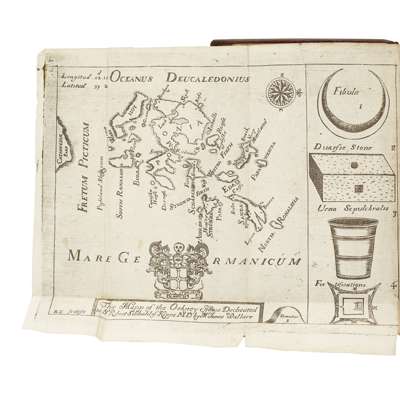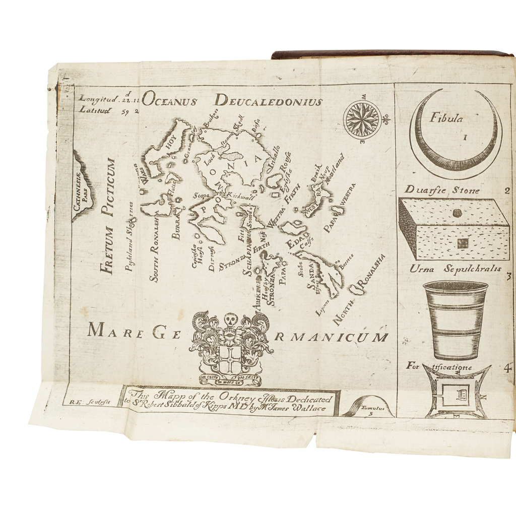 A Description of the Isles of Orkney... Edinburgh: John Reid, 1693. First edition, 8vo, map, 2 folding plates, 18th century morocco, some rubbing to covers, joints splitting, stamp reading 'reference library' to endpaper [ESTC R217131]