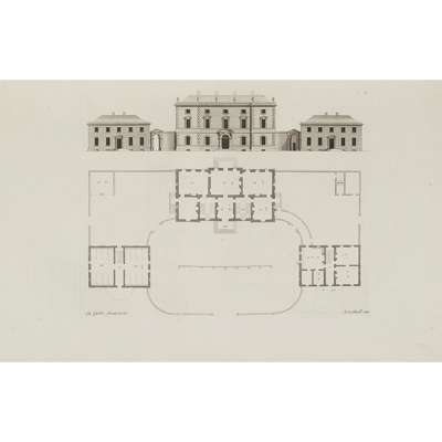 A Book of Architecture, containing Designs of Buildings and Ornaments. London: 1728. First edition, large folio, [4], 28; 150 engraved plates, occasional dampstaining, mostly marginal, tear to final plate with 15cm tear repaired, 19th century half calf, marbled sides, worn, covers detached, bookplate of Lenygon & Co. Ltd, 31 Old Burlington Street, London W.