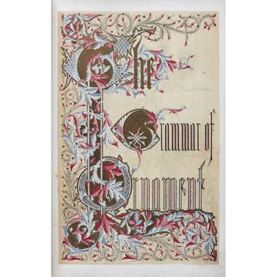 The Grammar of Ornament. London: Day and Son, [1868]. 4to, chromolithographed title-page and 111 chromolithographed plates, original red cloth gilt, a little wear to spine and joints