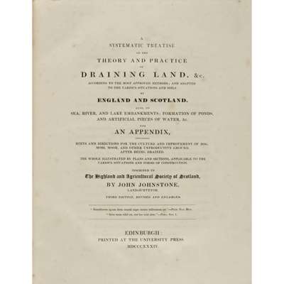 JOHNSTONE, JOHN. A SYSTEMATIC TREATISE ON THE THEORY AND PRACTICE OF DRAINING LAND