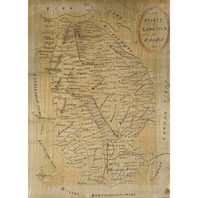 LINCOLNSHIRE - EMBROIDERED SILK MAP