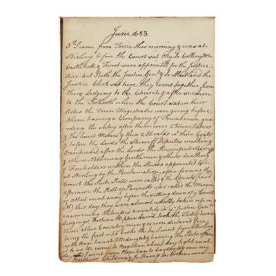 for the period 5 June 1683 - 26 May 1685, closely written in clean hand on the rectos and versos of 100 + leaves, 155 x 100mm., of a small oblong pocket notebook, half calf, slightly rubbed