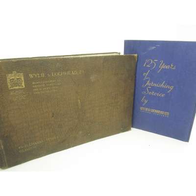 oblong folio, original brown cloth, 3 colour illustrations, one leaf torn with substantial loss, a little dampstaining, covers rubbed; with 6 receipts and cards for the company; [Idem] 125 Years of Furnishing Service by Wylie & Lochhead Ltd. [Glasgow, 1954] 4to, 2 copies, original blue gilt card wrappers (3)