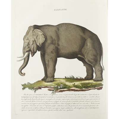 Note: First and only edition, originally issued in 46 parts in 1843-1846. One of the rarest Italian zoological works, complete. 120 species are depicted, each with 'rather good descriptions by Baschieri' (Wood), followed by a poem by Gazzadi outlining the moral properties of the animal. Baaschieri was a doctor from Modena while Gazzadi was a poet and translator from Sassuolo. The animals are depicted in their natural habitats. Species range from the familiar to the exotic including the pangolin and the vampire bat, and now extinct creatures such as the quagga. Nissen ZBI 1492; Wood 352. Both bibliographies call erroneously for 119 plates, having confused the number of species listed in the index with the number of plates required. Worldcast records four copies, Copac records 1.